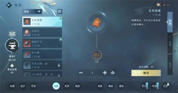 解锁工艺身份后可制作趣味玩具、精炼矿石、烟花等物品。共有两个发展分支,均为被动