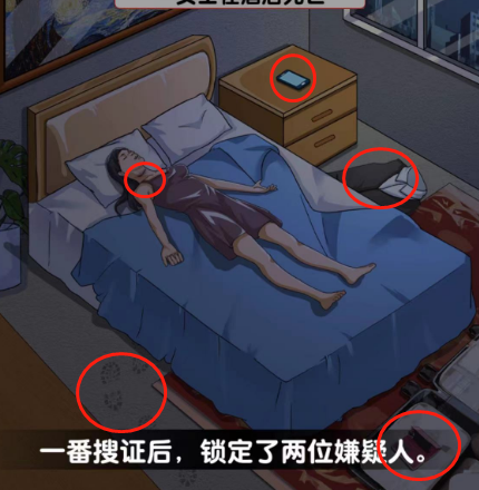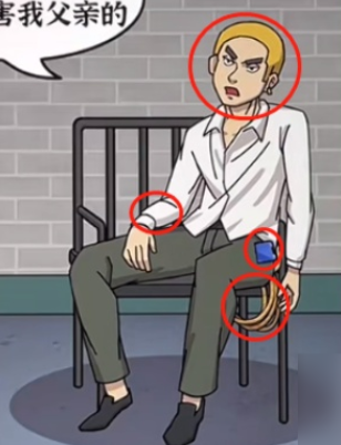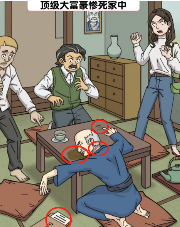 1、首次 点击 开场画面死去 富豪 的脖子、吐出的残渣,右手写的字和地上的文件袋。