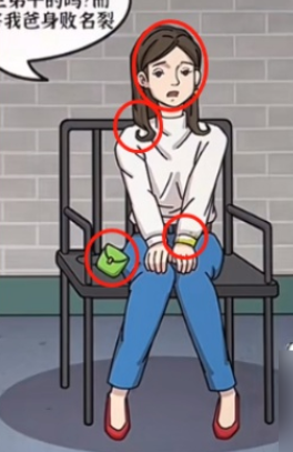 3、审查 女生 ,头发、袖口的茶渍,绿色包包点击两次出现户口本。