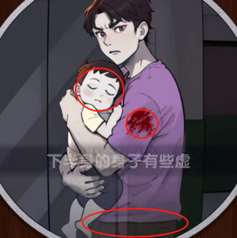 3、男人身上有血迹,小孩脸上没有血色,身体也有些虚。