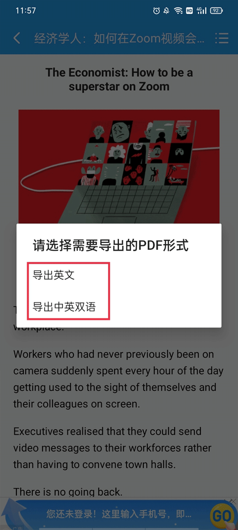 选择你想要导出文章的PDF形式,选好后进入下一步。