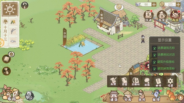 玩家们在刚进入游戏后,会获得一个小田园和一些小村民,玩家们需要不断经营它,田园本身分为很多不同的区域,这些区域所规划的东西都是不一样的,比如鱼池、田地、圈养场、果林、房屋、庭院等等,不过大部分东西都是要等后期才可以开启的,一开始只会出现小规模的地皮,并且这个地皮还十分荒凉,大家需要利用这个地皮来慢慢发展,这里小伙伴们可以选择建造一些最基本的农业建筑,例如小菜园、水池等等,然后在里面种植一些蔬菜、饲养一些鱼类。