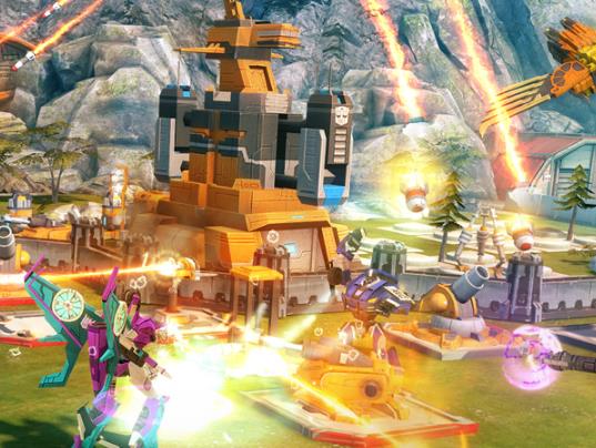 利用擎天柱的领袖身份,集结机器人合力攻击剩余的炮台,如果还有炮台剩下,那就让跳跃流去吸引仇恨,其余的机器人平A即可。