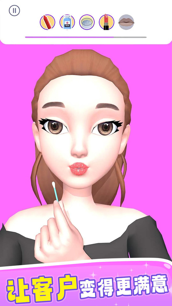 化妆品调色师是一款有趣的关卡游戏,通过不断练习各种化妆技巧,你可以更好地完成不同角色所需的妆容修饰,并享受其中的挑战。感兴趣的玩家赶快下载体验吧。