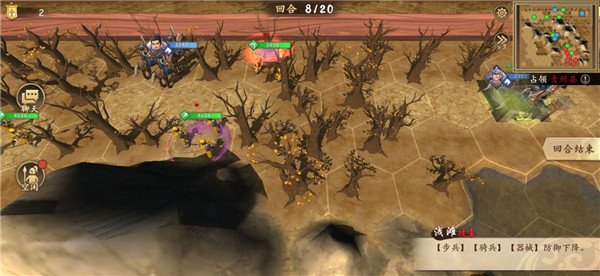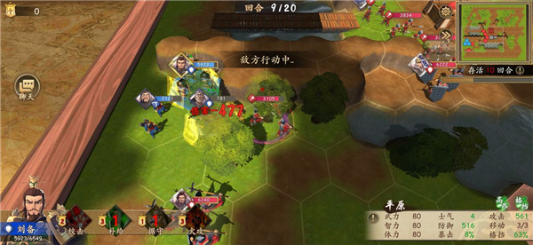(3)存活10回合。选两个身体好的盾,还一个谋士就行,两个更好,如果主将来了控制在外围就行了。开局把那两包粮食吃了,全力冲向左下角,杀掉乐进,因为他有毒,比较烦卡位,苟住,一直给外面的盾加状态,回血,就算盾死了,他们要杀掉刘备才行。所以不用担心。