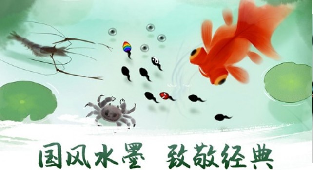 作品充分的结合了水墨国风特色,而且在其中加入了联网挑战项目,游戏中将会为你带来美轮美奂的水墨画风,拥有非常吸引玩家眼球的特色玩法,而且你所控制的角色就是黝黑黑的小蝌蚪。
