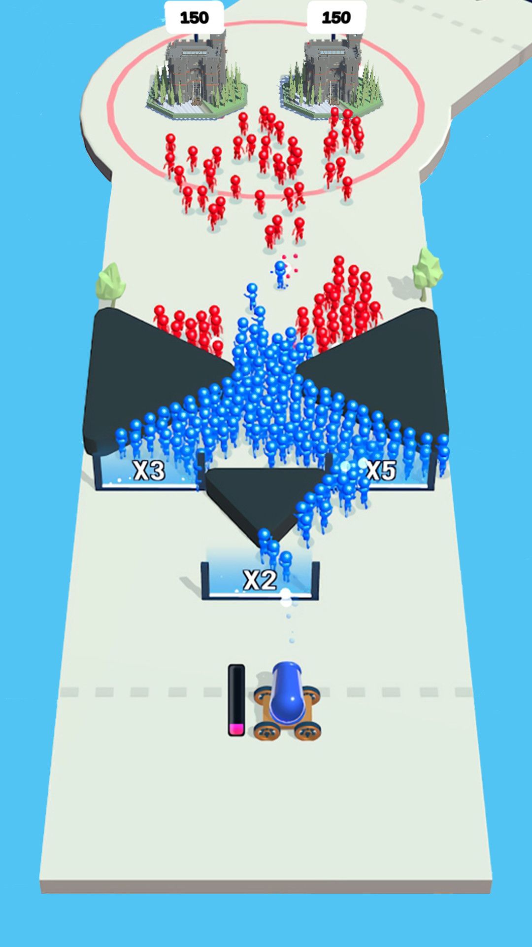 1、玩家在游戏中操控发射火柴人的大炮,在多重倍增门槛的帮助下,抵御敌人的进攻,取得关卡的胜利。