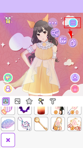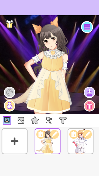 保存好角色的形象后,即可进入背景与第三方配饰页面,其中包含:背景、特效、物品、英文气泡