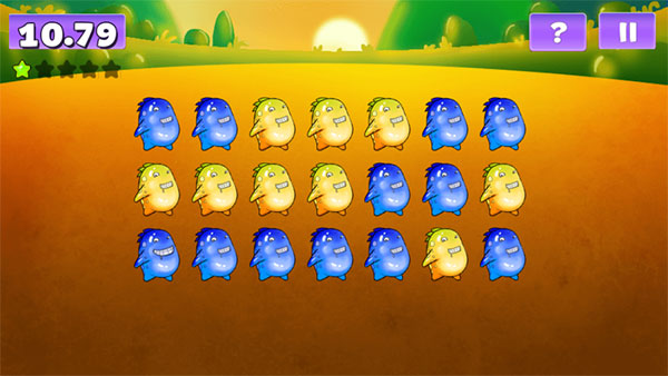 1、玩法还是非常简单的,只需要将所有的小笨龙涂成相同颜色即可,但需要注意的是每个关卡都有不同的时间限制,没有在规定的时间内完成即为失败,还有当你不小心点到相同颜色的小笨龙时,它还会变回原来的颜色,所以玩家不仅需要手速快,还有细心;
