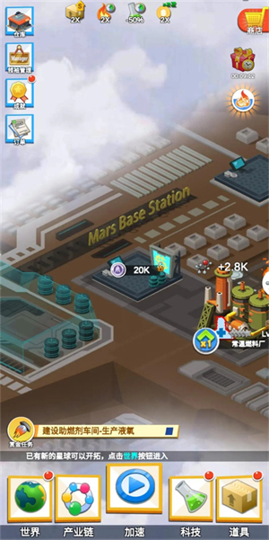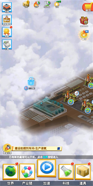 游戏中存在多个星球,包括工业星球、数码星球、天空星球、航天星球、枪炮星球、吃货星球,每个星球有一个产业链主题,玩起来不会感到枯燥,新鲜感不停留!