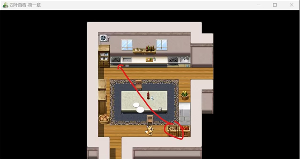 炉灶损坏后,从{一楼}右下角的楼梯前往卧室门口的{二楼走廊},在左侧的箱子里拿到【修理小锤】,然后回到{厨房},对着炉灶使用它。