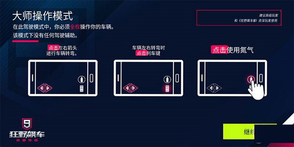 在智能操作模式下,玩家不用顾忌精细的转向,只要根据提示大幅滑动选择路线即可,熟练过弯才能够驾驭大师操作模式。