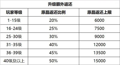 2、原晶返还以玩家同账号下最高等级角色为准,最高等级相同时以创建角色时间最早的角色为准。