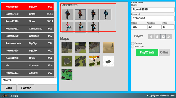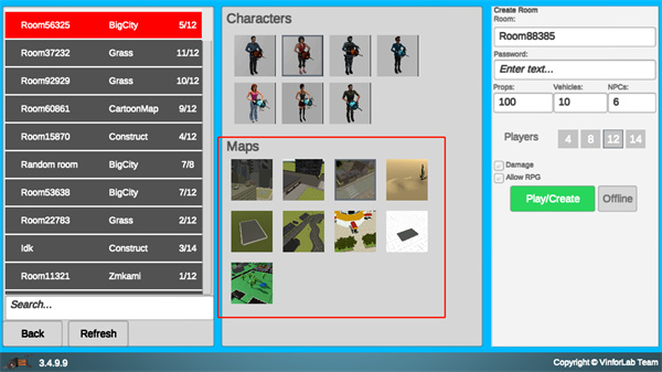 3、下方是地图场景,各类地图玩法各异。选定地图后,点击【offline】就能创建房间。