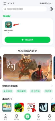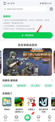 1、首先进入到游戏盒子之后点击中间的root空间点击添加游戏。