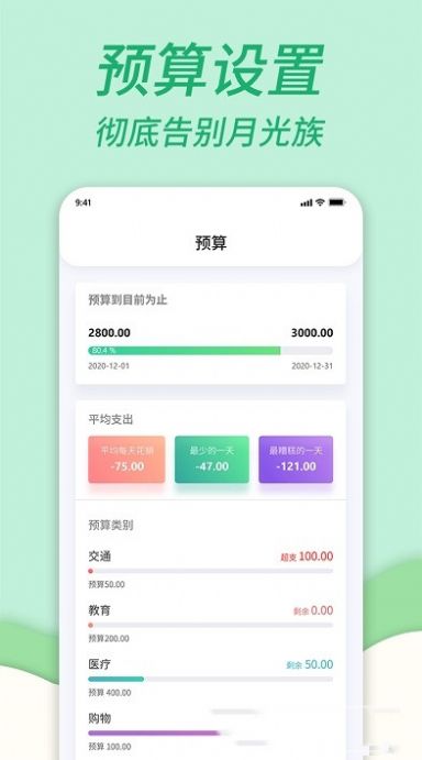 3、预算余额:通过自定义预算金额,实现对消费支出的监控,进而有效控制预算,保障财务健康。记账分类:对收入和支出记录进行分类保存,让账目清晰易懂。