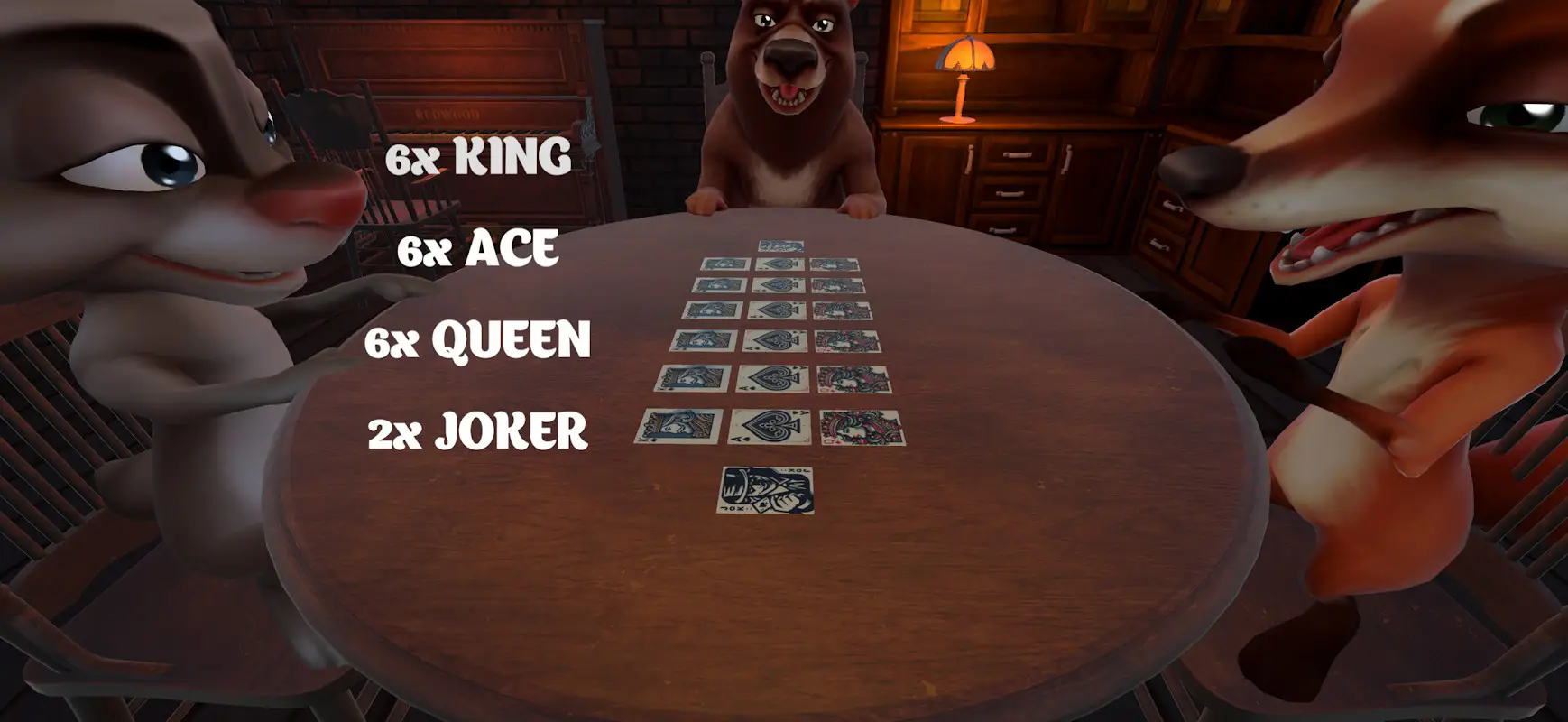 玩家轮流打牌,声明牌值。该值必须符合桌面的要求(例如,“king”或“queen”)。