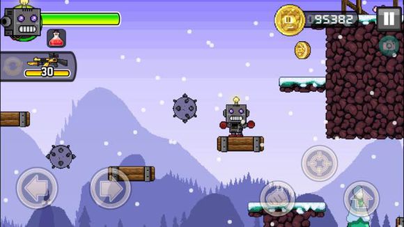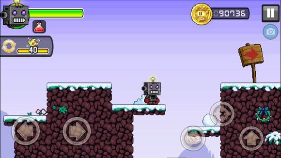 等待一会加载,游戏内左边两个按钮控制角色左右,右边则为攻击和跳跃键;