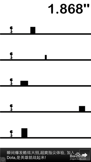 普通就很虐了,就是要控制同时上下2个小人奔跑跳动,不能撞击到柱子,在比较高的障碍物前面要提前起跳,比较矮的障碍物晚点跳也可以,如果玩家同时遇到障碍物,记得遇到高的障碍物的那个火柴人先跳