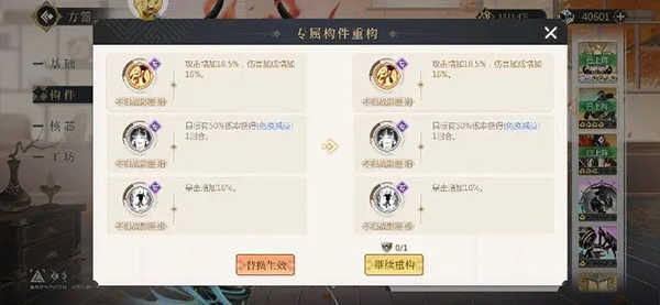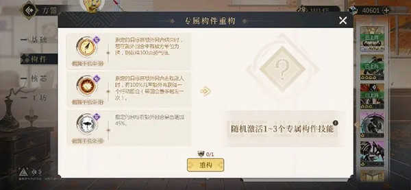 不归战影:重构技能时候主选1技能两个技能时,选1、3技能。