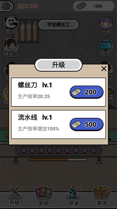 2、与其他工人进行PK竞赛,挑战更高的职称,解锁新的工作机会和福利。