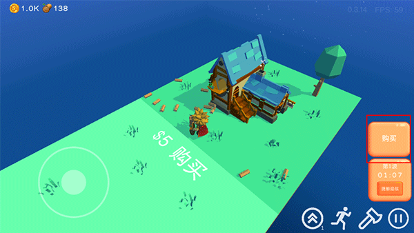 4、上方会显示,金币数量和资源数量,而下方会显示怪物袭击的倒计时