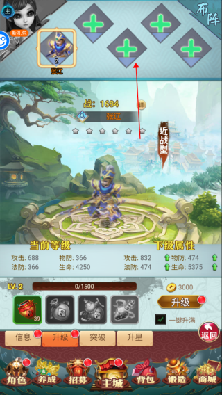 4、点击顶部“+”号以更换或上阵英雄