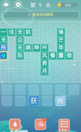 1、精挑细选的成语词库。2、改进的填字玩法。