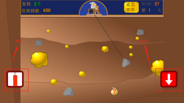 3、不变的经典玩法:校准角度,看准时机抛出抓钩,迅速拉回抓住的金子等物品。