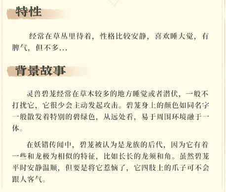 这只极为像龙的妖灵被不少人说是龙裔,因为浑身碧绿,所以也被称之为碧茏(lóng)。