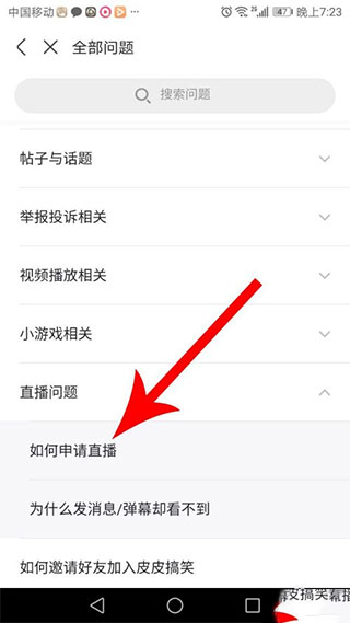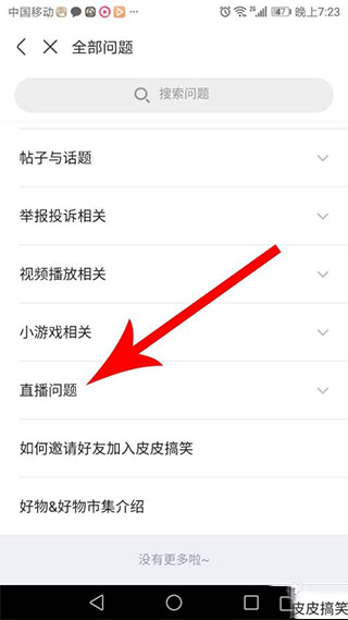 4、打开全部问题界面后向下滑动,然后点击“直播问题”。