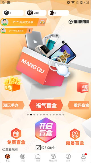 同时每28元开启一个盲盒