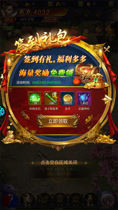 游戏设置了海量的元宝福利,每天登录游戏都能领取