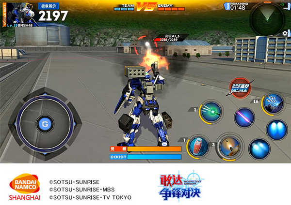 基本操作攻略敢达争锋对决收录有十余部敢达系列的机体,忠实再现了宏大世界观中多样的武器设定。表现在游戏中,更是形成了丰富多彩的射击技能。不同的机体设置有不同的射击型武器,按压屏幕中的「普通射击键」便能发射主射击武器的攻击。建议事先了解并多多熟悉所拥有机体的射击性能,能够对完成未来的对战与任务有着莫大的帮助。