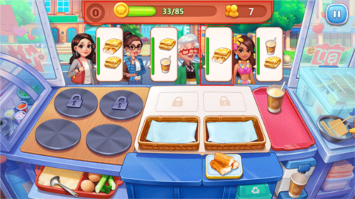 玩家只要根据客人的口味来做出她们喜欢吃的煎饼,不过需要注意的是旁边绿色的进度条,这表示客人的忍耐值,当忍耐值达到红色时,就表示客人已经很生气了。