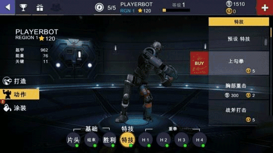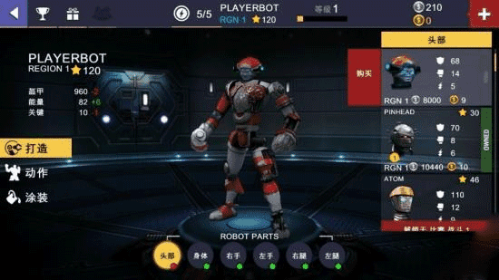 编辑机器人则是外在的升级,看上去就很厉害的升级,也是小编最喜欢的升级方式。打造、动作和涂装三大类。打造主要是机器人不同部位的机甲升级;动作则让你的机器人在比赛中动作更炫酷,更具观赏性;而涂装则是将机器人喷涂成不同的颜色,更帅气。