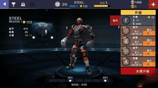 小编要特别给各位玩家介绍一下游戏神奇的升级系统。《铁甲钢拳冠军赛》有两套升级系统,一套叫升级,一套叫编辑机器人。机器人毕竟是个机器,第一个升级主要是升级机器人的软件设备,增加机器人的盔甲、能量和关键,提高机器人灵活性、力量和耐力。