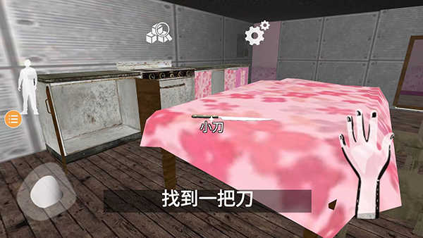 左边圆形按钮可以控制角色移动,右边手掌按钮可以打开抽屉、门或者使用物品,我们可以通过在不同房间的不同地方查找需要的东西,