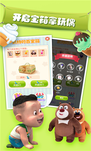 养成玩法:玩家可以领养熊大和熊二,并通过照顾它们的饮食起居来与它们建立关系并一起成长。