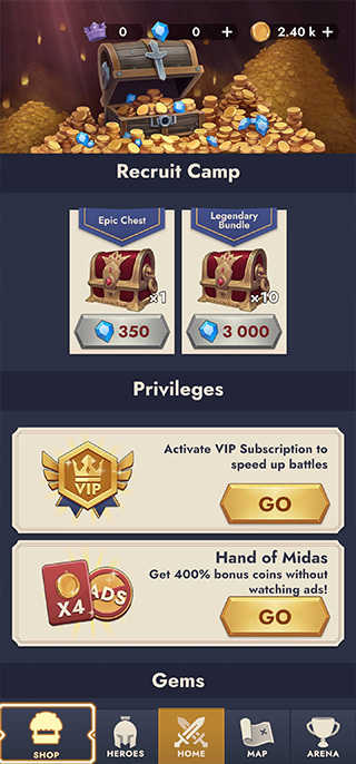 的英雄在你的小军队中聚集传奇英雄,更快地与敌人作战!每个角色都有自己独特的技能和能力,可以一举决定战争!