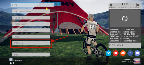 在本站下载并安装游戏后,进入游戏页面点击SETTINGS,如下图所示位置。