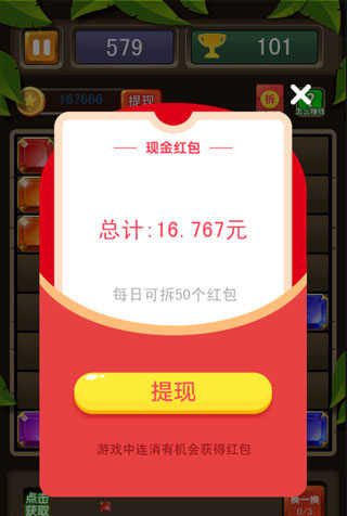 3、只要每次通过一关,玩家们都能获取到红包奖励;