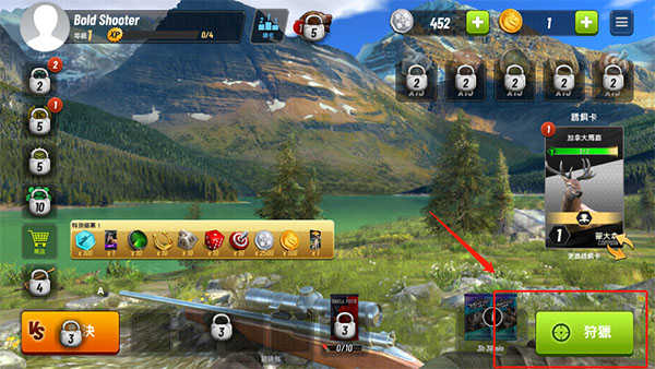 安装游戏,直接进入到游戏的主页面中,可以直接点击狩猎开始游戏