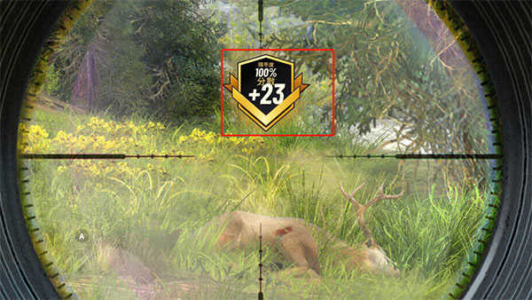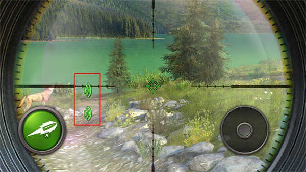 在瞄准的过程中,当动物身上出现了绿色的圆圈意味着玩家可以直接射击这个地方,这样可以提高射击准率