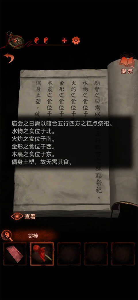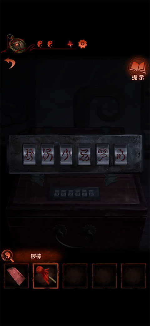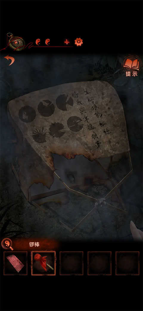 纸嫁衣4第五章首先在崔婉莺界面,拿起石碑上的鱼形物件,然后在门外的机关将字符都填充到相应位置,会获得一个轮状零件。利用牌匾过门口大坑到石碑处,将两个鱼形物件放入龙头下的圆坑中。