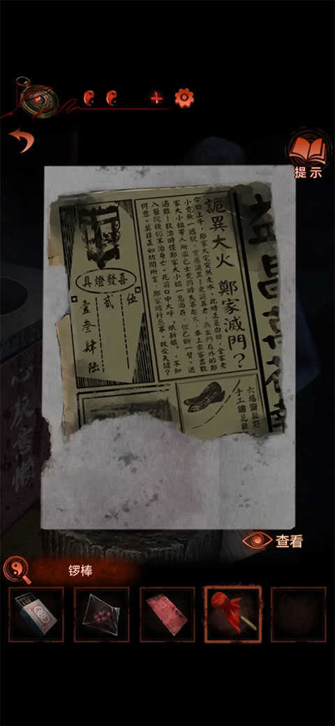 c右侧场景,出现个打糍粑的纸人,旁边报纸点开,再点一下到背面。