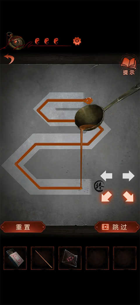 得到发现灯笼的线索,来到中间场景,按顺序左中左左右左得到剪刀和金元宝。
