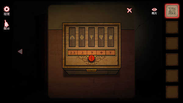 9、签盒中的五支签对应了匣子的密码,需要将匣子上的每个图案列高度与签的名字对齐。