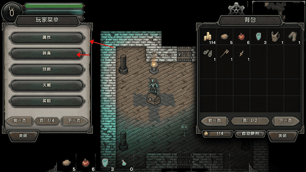 点击背包可以查询菜单,有着多种功能