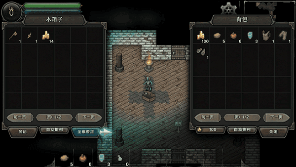 开启之后有一些材料,可以选择转移到自己的背包